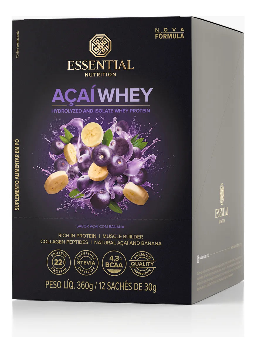 O Açai Whey Display 360g/12Ds Essential é a escolha ideal para quem busca um suplemento nutricional de alta qualidade. Com uma fórmula rica em Whey Protein, este produto é perfeito para atletas e pessoas que desejam aumentar a ingestão de proteínas em sua dieta. Cada sachê oferece uma porção prática e fácil de transportar, ideal para o dia a dia ou para o pós-treino.