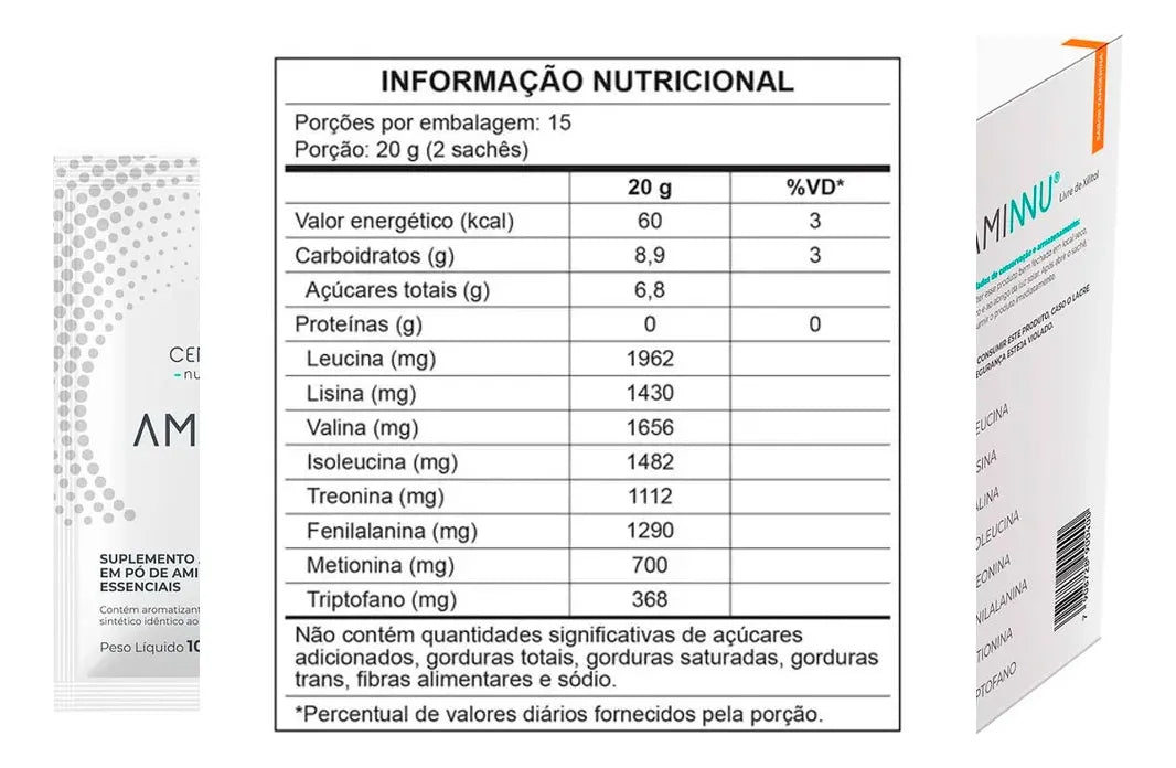Com 15 porções por embalagem, cada sachet contém 20g, oferecendo uma dosagem perfeita para incluir na sua rotina de treinos ou atividades diárias. Experimente Aminnu® Sem Xilitol e potencialize seus resultados com essa opção nutritiva e saborosa.